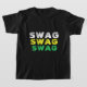 Los niños cuelgan camisetas que se muestran en negro con la impresión SWAG. Personalizar este artículo o compra tal cual.