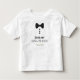 Estas divertidas camisetas están diseñadas como favores o regalos para los portadores de anillo bodas. La camiseta es blanca y tiene una imagen de una corbata de arco negro y tres botones. En el texto se lee Ring Bearer y se puede introducir su nombre, así como el nombre de la pareja boda y la fecha boda. Excelente adición a una bolsa de boda.