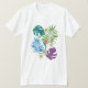Coloridas hojas tropicales de palmeras, monstera, flores plumerias y pájaros del paraíso.