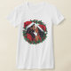 Este ilustracion festivo generado por el aire presenta a una pareja negra vestida con ropa de Navidad y sombreros de Santa, ambos tienen rastas. La imagen está dentro de una corona de Navidades decorativos.