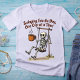 Añade algo de energía a tus mañanas con este diseño que incluye un esqueleto sentado en un columpio, sosteniendo una taza de café humeante, y la frase "Inclinándose en el día... Una copa a la vez". Perfecto para los amantes del café con un lado lúdico.