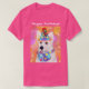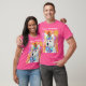 El color es muy bonito al natural, como la foto. El tejido es suave y de buena calidad. Sin defectos en el tintado, ni hilos sueltos o descosidos. Bien la impresión. Los bordes de las letras y el dibujo son nítidos, y el color contrasta muy bien con el de la camiseta.