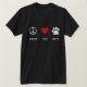 Este diseño de producto elegante de las patas del amor de la paz con una impresión del signo de la paz, del corazón y de la pata hace un regalo único para los amantes del dueño del mascota y animales, especialmente el perro y los dueños y los amantes del gato.