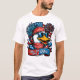Esta camiseta blanca tiene un divertido pato personalizado con gafas de sol y una bandana roja, rodeada de banderas estadounidenses y fuegos artificiales. Una pancarta dice "Rojo * y * Blanco * y * Azul," creando un juguetón diseño patriótico.