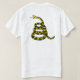 Camiseta que describe algunas creencias fundamentales de un patriota en el frente con una serpiente tenue de Gadsden. En la parte de atrás está la serpiente Gadsden sin texto.
