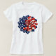 A striking patriotic floral illustration that reimagines the American flag as a single, radiant blossom. Deep navy-blue petals adorned with crisp white stars form the outer layers, while bold red and clean white petals spiral inward, creating a sense of motion, unity, and depth. The layered composition feels both elegant and powerful, symbolizing national pride, resilience, and harmony.