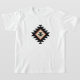 Patrón bohemio étnico azteca con formas geométricas en rojo, naranja, gris y negro sobre fondo blanco