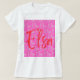 Nombre Elsa manuscrito rojo y repetición del diseño del nombre de la firma Elsa gris blanco sobre fondo de color rosa sólido