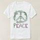 el signo de la paz tradicional, hecho fuera de las hojas y de las flores verdes. con la paz de las palabras por debajo ella escrita otra vez usando las hojas y las flores, este vez con púrpura