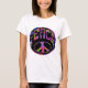 Allí un signo de la paz con la palabra "PAZ" sobre ella. Los colores son fondo negro con un primero plano teñido lazo.
