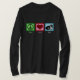 Una linda camisa de gato con un signo de paz verde, corazón rojo y un hermoso gato enrollado en una plaza. Me encantan los tés de bonitos.