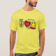 This Peace, Love & Happiness T-Shirt features playful peace, heart, and smiley icons centered on the chest. The green script name detail in the upper-right adds a personal signature touch while keeping the design light and balanced.