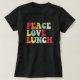 Camiseta Peace Love Lunch Lady Retro Back To School Groovy
