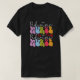 El color es muy bonito al natural, como la foto. El tejido es suave y de buena calidad. Sin defectos en el tintado, ni hilos sueltos o descosidos. Bien la impresión. Los bordes de las letras y el dibujo son nítidos, y el color contrasta muy bien con el de la camiseta.
