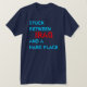 Esta camiseta de Iraq juega en el viejo refrán "pegado entre una roca y un lugar duro", y lo configura de nuevo en un retruécano "pegado entre IRAQ y un lugar duro". Una camiseta de la declaración simple en la guerra en Iraq.