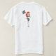 Peggy Pitstop con la bandera a cuadros en la parte de atrás de la camiseta