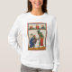 Ilustracion del manuscrito medieval Manesse del Codex del siglo XIV. Las damas ven a los caballeros peleándose entre ellos por la espada en un torneo. Gran regalo para alguien interesado en la historia, la caballería y el arte de la Edad Media. Dramática pintura de caballeros luchando entre ellos con espadas y escudos, mientras la audiencia mira desde arriba.