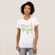 Camiseta del día de fiesta de la prueba del pellizco que ofrece una escritura manuscrita verde con un trébol verde debajo
