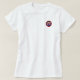 Camiseta blanca con diseño de pecho izquierdo, círculos concéntricos rojos, negros y blancos y "PENSAMIENTO-CAPACIDAD" con un logo brillante I-BONE LTD. en el centro del diseño. En la parte de atrás está "PENSANDO EN LA CAPACIDAD DE UTILIZARLO O PERDONARLO NO DEPENDE DE OTROS PARA HACER TU PENSAMIENTO POR TI" y I-BONE LTD. Cultivar una mente brillante capaz de pensar crítico es responsabilidad de cada uno de nosotros. Usar esta camisa simplemente dice (valoro la capacidad de pensar). Sólo un poco.