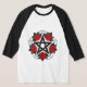 Pentagrama negro con estampado, decorado con rosas rojas florecientes con hojas sobre fondo blanco. Estilo tatuaje.