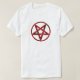 Pentagrama rojo, invertido, texturado en círculo, sobre fondo blanco. Símbolo oculto. 666