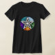 Pentagrama luminoso de dibujo artístico con cinco elementos mágicos, agua, tierra, fuego, astral, aire sobre fondo negro. Pentagrama de Wiccan. Wicca