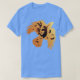 El color es muy bonito al natural, como la foto. El tejido es suave y de buena calidad. Sin defectos en el tintado, ni hilos sueltos o descosidos. Bien la impresión. Los bordes de las letras y el dibujo son nítidos, y el color contrasta muy bien con el de la camiseta.