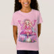 Una hada rosa bonito y su lindo gatito están sentados en un hongo en un bosque encantado.