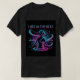 Un poster de arte digital iluminado por neones con fondo negro que presenta una figura en una camiseta blanca centrada en la composición. La figura tiene los brazos estirados, con el pelo flotante y los auriculares rosas brillantes. El texto "PERDIDO EN EL GOLPE" aparece en la parte superior con letras de neón rosas y azules. El fondo contiene una silueta de perfil urbano con barras verticales en cian y rosa.
