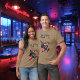 El color es muy bonito al natural, como la foto. El tejido es suave y de buena calidad. Sin defectos en el tintado, ni hilos sueltos o descosidos. Bien la impresión. Los bordes de las letras y el dibujo son nítidos, y el color contrasta muy bien con el de la camiseta.