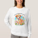 Una camiseta de manga larga con la foto de un cachorro adorable sentado entre las flores. Se ve muy feliz de estar rodeado de flores y mariposas. El regalo perfecto para dar a los que aman los perros perritos. El eslogan es 'Palas pequeñas, gran amor'. Contiene contenido generativo.
