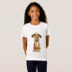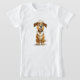 Perro de estilo caricaturesco con una expresión alegre. El perro tiene un pelaje marrón claro con pelo blanco en el pecho y algunas mechitas en la cabeza. Sus orejas son caídas y tiene ojos grandes y expresivos. Lleva un collar marrón con una placa y se sienta con sus patas delanteras ligeramente separadas, dando una apariencia acogedora y amigable. El fondo es blanco liso, lo que hace que el perro sea el foco principal de la imagen. En general, el personaje emana calidez y juguetonería.
