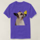 El color es muy bonito al natural, como la foto. El tejido es suave y de buena calidad. Sin defectos en el tintado, ni hilos sueltos o descosidos. Bien la impresión. Los bordes de las letras y el dibujo son nítidos, y el color contrasta muy bien con el de la camiseta.