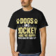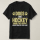 Camiseta temática de hockey con texto que dice Perros y Hockey ¡Hazme feliz a los humanos me duele la cabeza! También cuenta con algunos palos de hockey y huellas de pata de perro!