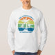 Estas frescas camisetas de manga larga y personalizadas con puesta de sol en la playa cuentan con 3 palmeras colocadas sobre un cielo naranja y azul acentuado con amarillo y verde en la costa. Personalizar para un gran viaje en familia, manténgase atento para su escapada costera de vacaciones en primavera o verano o en cruceros oceánicos.