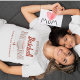 Camiseta de mamá de béisbol orgullosa con texto retro moderno y una pelota de béisbol en colores clásicos rojo y blanco, personalizada con el nombre de tu hijo.