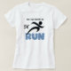 Un corredor de siluetas negro, texto azul que lee RUN, y áreas que puedes personalizar fácilmente con tu caridad o nombre de evento y raza, ya sea un 5K, 10K, 26.2 o 13.1! Los corredores que buscan colores y estilos impresionantes de camisetas y otras prendas de correr apreciarán la facilidad de pedir esta camiseta de diseño personalizado.