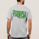 Esta camiseta tiene un bolsillo en el frente completo con el logotipo del triple de la calle y un espacio para su nombre o cualquier texto. También se divierte un logotipo grande del triple de la calle en la parte posterior.