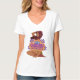 Camiseta con cuello en V de mujer, Negro, XL de adulto