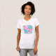Camiseta personalizado de flores azules rosadas con tu propio texto, cito, nombre de la ciudad. Camiseta moderna y elegante para mujeres, amantes de la moda, floridas, amigas, madres, damas, adultos para cumpleaños, Día de la Madre, navidades, vacaciones. Usa esta camiseta blanca color agua floral de moda para un estilo único.