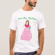 Futuro personalizado con camisetas de la señora con la foto de una novia con vestido de flores rosadas. Personalizar el texto para el futuro nombre de la novia. Seleccione el tipo de letra o tipo de letra y el color de texto que prefiera.