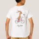Bonita camiseta para el niño con un ilustracion personalizado de graciosa y adorable cachorro montando en bicicleta. Gran regalo para el niño, especialmente si es un fanático del ciclismo y amante del perro.