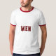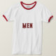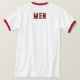 Hombres Texto o Nombre o Palabra con Color Rojo Oscuro Texto y El estilo es camiseta de anillo de dedo Básico, el tipo de color es blanco/rojo y el tipo Tamaño es L adulto.