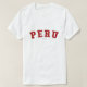 ¡Compruebe hacia fuera esta camiseta de Perú! ¿Es usted de Perú? ¿Usted tiene un amigo o un miembro de la familia que amen Perú? ¡Si es así esta camiseta de la "bandera" es exactamente el regalo que usted está buscando! Las características del diseño "Perú" en letras rojas arqueadas en la fuente clásica de la universidad.