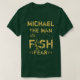 Camiseta de pesca personalizada Relace el nombre Micheal con el nombre que usted necesita, para hacer de este un regalo totalmente único ideal para cualquier cumpleaños de los pescadores o día de los padres, etc. La camiseta dice "NOMBRE DEL HOMBRE QUE PESCA". Con un pescador en un bote capturando un pez que aparece en el mundo. Gran diseño.