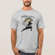 El diseño personalizado perfecto para los locos por Walleye. Una imagen detallada a todo color de un poderoso toothy Walleye con el texto Walleye Fishing Ninja dentro de la silueta de un ninja con una varilla de pesca doblada de una valla enganchada.