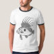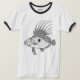 Una camiseta blanco y negro de moda, con un ilustracion del dibujo lineal de un pescado. Disponible en otros colores y estilos.
