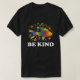 El color es muy bonito al natural, como la foto. El tejido es suave y de buena calidad. Sin defectos en el tintado, ni hilos sueltos o descosidos. Bien la impresión. Los bordes de las letras y el dibujo son nítidos, y el color contrasta muy bien con el de la camiseta.