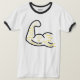 Esta camiseta con forma de jengibre tiene un diseño que presenta la escritura bibliográfica "Philippians 4:13" con un tipo de letra impreso a mano con letras amarillas colocadas en un bicep flexible más un contorno negro en este tema de citas de escritura basada en la fe. Este tee tiene un aspecto de inspiración vintage con esposas contrastantes y un escote para un ambiente deportivo pero informal.
