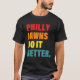 El color es muy bonito al natural, como la foto. El tejido es suave y de buena calidad. Sin defectos en el tintado, ni hilos sueltos o descosidos. Bien la impresión. Los bordes de las letras y el dibujo son nítidos, y el color contrasta muy bien con el de la camiseta.
